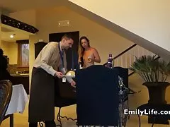 有趣 - 两个有趣的女同性恋者吃猫,一只公鸡加入时